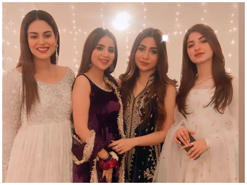 Saboor was seen in a purple velvet kameez shalwar with a dupatta with golden kiran. Marian Ansari, Kinza Hashmi, Amar Khan and makeup artist Sara Ali also shared these pictures and confirmed on social media that it was Saboor’s first dholki. However, we have still not found any pictures of Sajal Aly.
