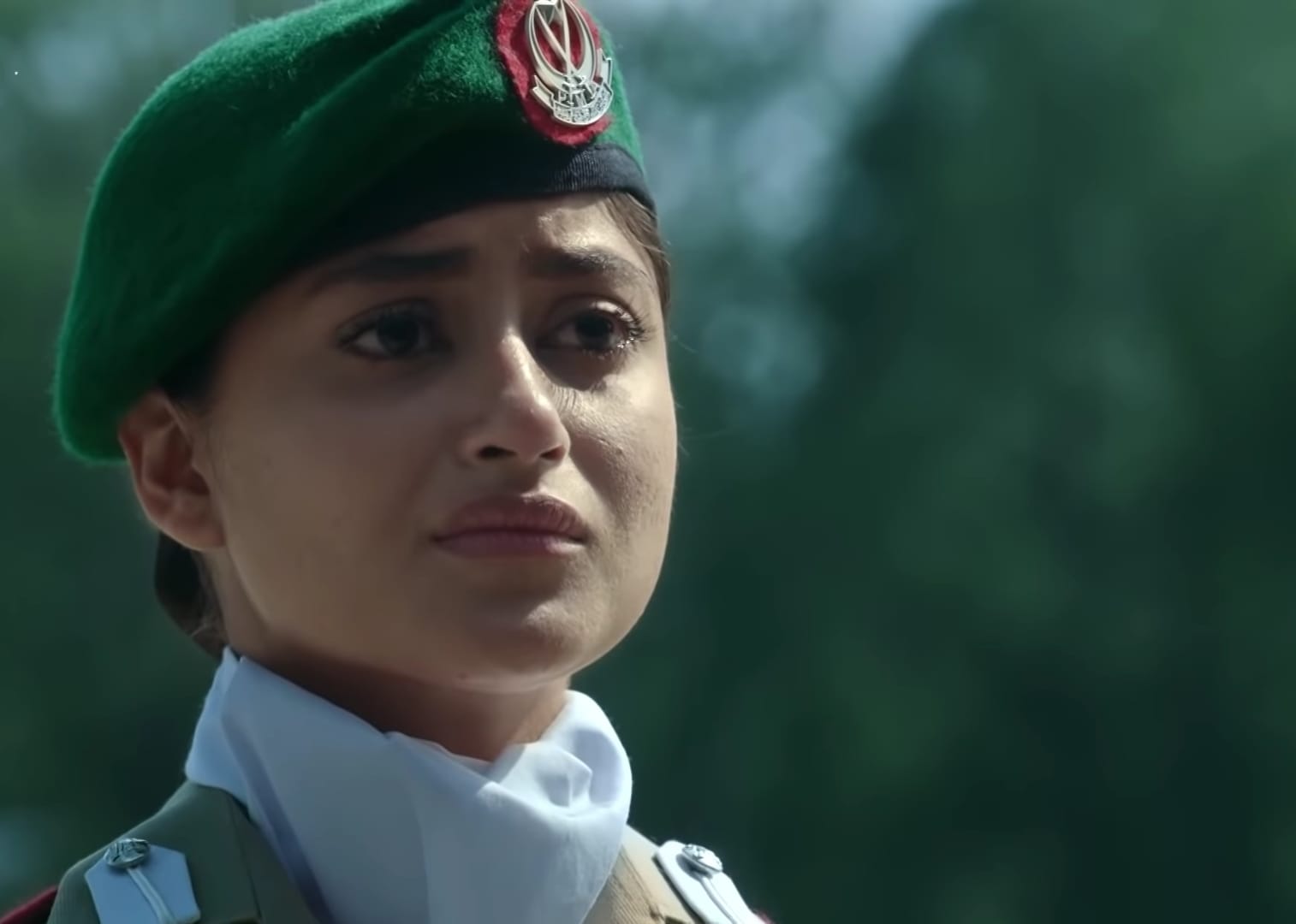 The teaser shows beautiful shots where Rabia is training in difficult positions to overcome her fears. It is refreshing and heartwarming at the same time to see a superstar like Sajal running on tracks, learning how to paratroop, doing target practice etc, and finally appear in a uniform.